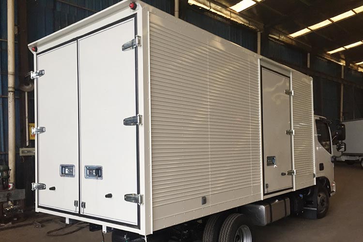 Hay muchos tipos de materiales para la carrocería del camión con caja. De acuerdo con los requisitos de rendimiento, se utilizan comúnmente paneles sándwich con núcleo de espuma de fibra de vidrio y paneles de nido de abeja de fibra de vidrio. Por ejemplo, el panel sándwich con núcleo de espuma XPS/PU con baja conductividad térmica se usa generalmente para camiones refrigerados, y los paneles de nido de abeja de PP livianos y de alta resistencia y los paneles de espuma de PET/PVC se usan para camiones de carga seca que no necesitan calor. -aislado.
