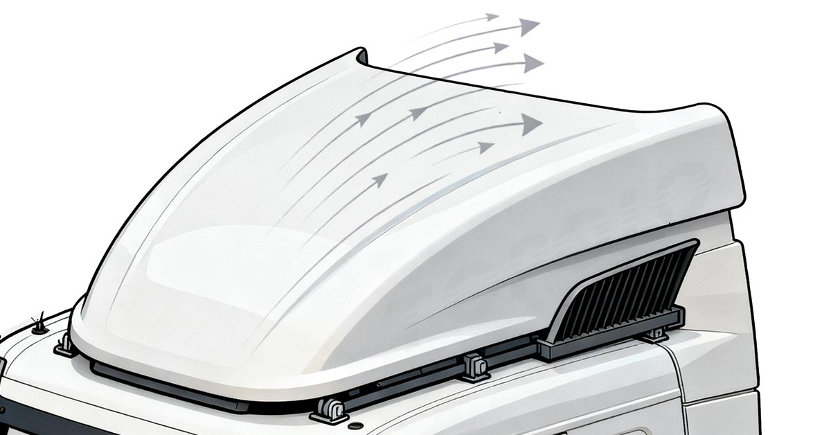 Además de mejorar la aerodinámica, el deflector de aire protege el techo de la cabina de la luz solar directa, ofreciendo además aislamiento térmico y mayor comodidad para el conductor.