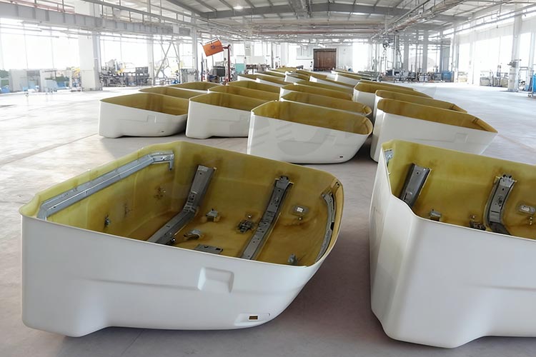 El deflector de aire se fabrica mediante el proceso de laminado manual, en el que el refuerzo de fibra de vidrio se coloca manualmente en el molde y se impregna con resina. Este método tradicional permite una gran flexibilidad, ya que se puede utilizar prácticamente cualquier tipo de refuerzo, incluyendo estera de fibra cortada o tejido. La proporción de resina y catalizador también se puede ajustar para lograr la velocidad de curado y el rendimiento mecánico deseados.