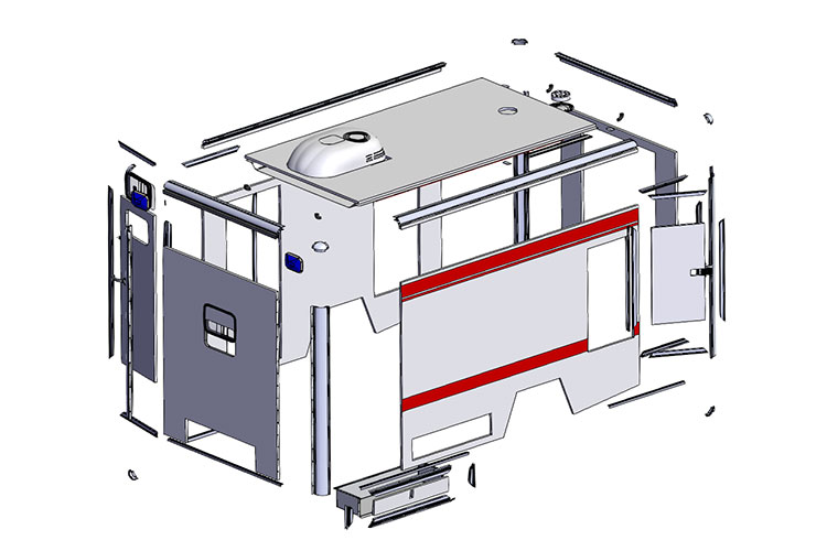 La caja de ambulancia modular se puede utilizar en diferentes modelos, lo que acorta el ciclo de producción y reduce los costes. También se puede entregar en formato CKD/SKD (completamente desmontable/semi desmontable) para reducir los costes logísticos y la dificultad de instalación.