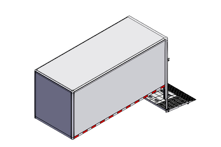 El portón trasero vertical permite elevar o descargar rápidamente la carga desde el suelo hasta la carrocería del vehículo, sin necesidad de equipos adicionales de carga y descarga, como carretillas elevadoras, lo que ahorra considerablemente tiempo de carga y descarga.