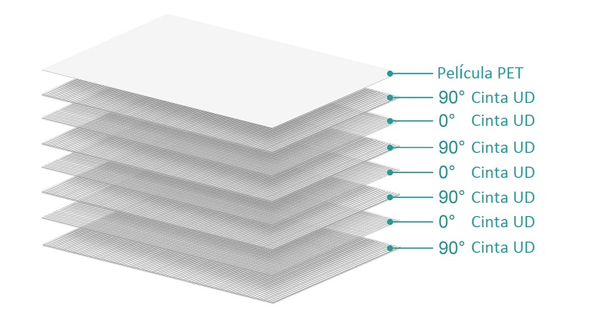 El CFRT está hecho de cinta unidireccional termoplástica GPP 450, que se apila en ángulos de 0°/90°, y la cantidad de capas depende de la demanda. Una capa de película protectora de PET se recubre en su superficie para embellecer la apariencia.
