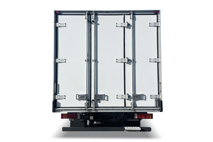 La carrocería de un camión refrigerado con tres puertas traseras está diseñada para proporcionar una carga y descarga eficiente de productos sensibles a la temperatura.