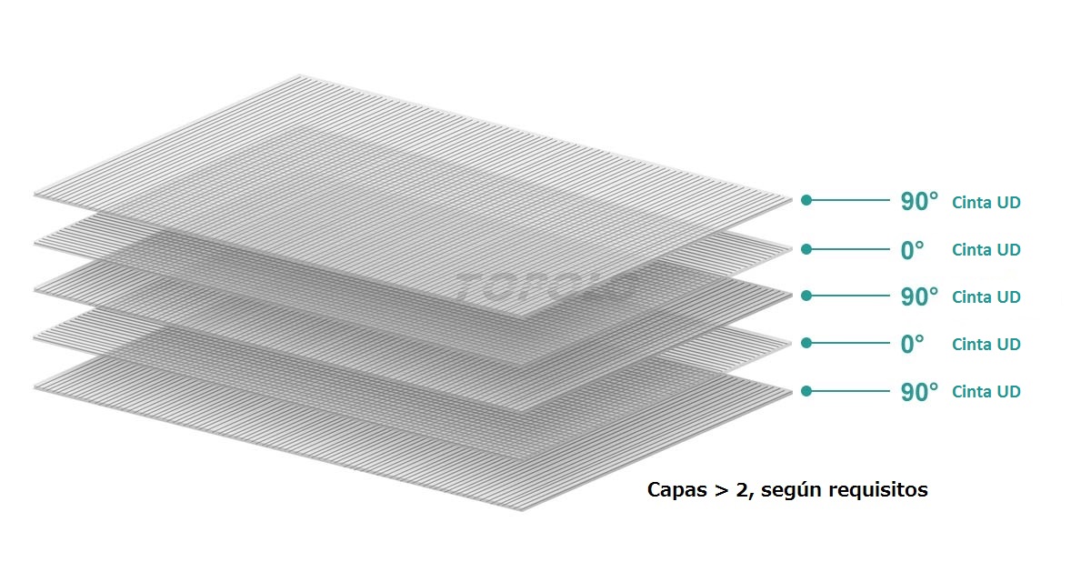 Capas de cinta UD 90° / 0° (personalizable: 2-9 capas)