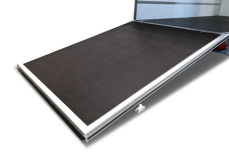 Las paredes y el techo de la caja del remolque están fabricados con un compuesto de espuma PET reciclada, y el suelo de la caja está construido con el mismo panel termoplástico antideslizante de panal utilizado para las puertas de rampa. La caja es ligera, duradera, resistente e impermeable.